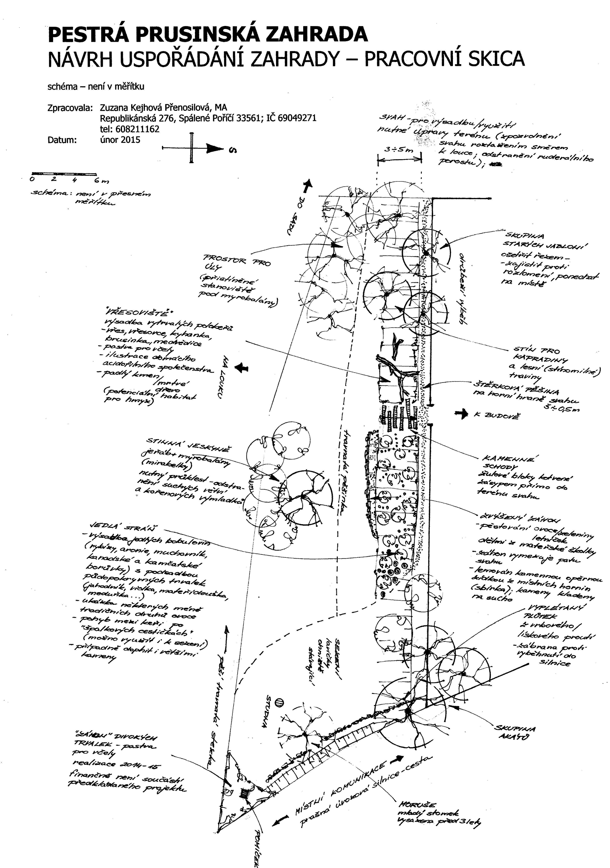 Zahradní architektka Zuzana Kejhová-Přenosilová pro naši zahradu nakreslila na základě našich podnětů a představ plán. Najdete v něm jednotlivé prvky a jejich stručnou charakteristiku.